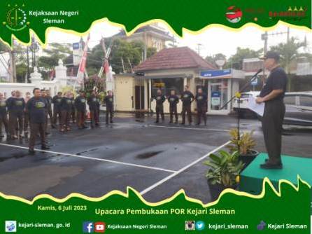 Sleman- Pada hari Kamis tanggal 6 Juli bertempat di halaman kantor Kejaksaan Negeri Sleman telah digelar Upacara Pembukaan Pekan Olahraga Kejaksaan Negeri Sleman dalam rangka memperingati Hari Bakti Adhyaksa Ke 63 Tahun 2023. ...