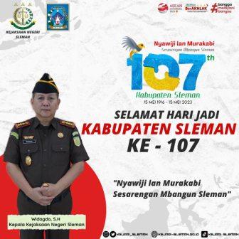 Kepala Kejaksaan Negeri Sleman Widagdo, S.H. beserta jajaran mengucapkan Selamat Hari Jadi Kabupaten Sleman ke-107. ...