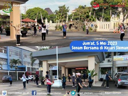Sleman - Pegawai Kejaksaan Negeri Sleman mengikuti Senam Bersama bertempat di halaman kantor Kejaksaan Negeri Sleman. Kegiatan senam bersama ini merupakan kegiatan rutin setiap Jum'at pagi sebagai upaya untuk menjaga kesehatan dan kebugaran ...