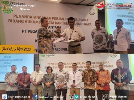 Sleman - Jumat, 5 Mei 2023 pukul 13.00 WIB, telah dilaksanakan penandatanganan Perjanjian Kerjasama (MoU) Bidang Hukum Perdata dan Tata Usaha Negara antara PT Pegadaian Kanwil XI Semarang dengan Kejaksaan Tinggi DIY dan ...