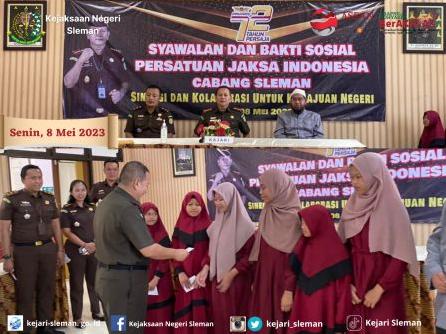 Sleman - Pada hari Senin tanggal 8 Mei 2023, Kepala Kejaksaan Negeri Sleman, Widagdo, S.H. bersama Persatuan Jaksa Indonesia Cabang Sleman menggelar Syawalan dan Bakti Sosial bersama seluruh pegawai dengan mengundang Anak Asuh ...