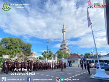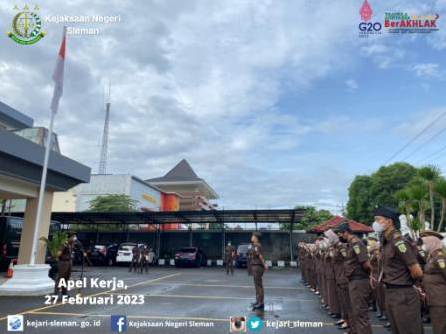 Apel Kerja, Senin, 20 Februari 2023 di kantor Kejaksaan Negeri Sleman. Kepala Seksi Pidana Umum Agung Wijayanto, SE, SH, MH bertindak sebagai Pembina Apel, dan diikuti oleh seluruh pegawai. ...