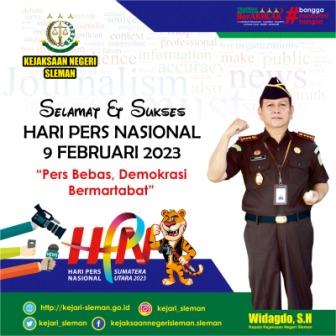 Kepala Kejaksaan Negeri Sleman Widagdo, S.H. mengucapkan Selamat dan Sukses Hari Pers Nasional 9 Februari 2023 "Pers Bebas, Demokrasi dan Bermartabat" #KejaksaanRI #Jaksa #JaksaAgung #TrapsilaBerakhlak #kejarisleman #kejatijogja #kejaksaanhebat #Berintegritas #KerjaCerdas #MelayaniDenganIkhlas #terusbergerakdanberkarya #adhyaksa ...