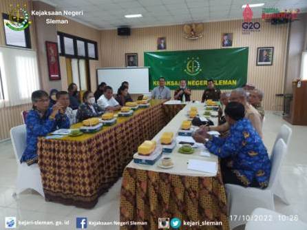 Kepala Kejaksaan Negeri Sleman Widagdo, S.H. bersama Kepala Seksi Intelijen dan Kepala Sub Seksi Ekonomi, Keuangan dan Pengamanan Pembangunan Strategis menyelenggarakan Rapat Koordinasi Pengawasan Aliran Kepercayaan dan Aliran Keagamaan Dalam Masyarakat Kabupaten Sleman ...