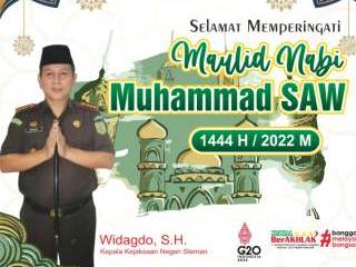Kepala Kejaksaan Negeri Sleman Widagdo, S.H. mengucapkan Selamat Memperingati Maulid Nabi Muhammad SAW 1444 H / 2022 M #KejaksaanRI #TrapsilaBerakhlak #kejarisleman #kejatijogja #kejaksaanhebat #Berintegritas #KerjaCerdas #MelayaniDenganIkhlas #terusbergerakdanberkarya #adhyaksa #trapsilaadhyaksa #jaksa #jaksaprofesional #jaksasahabatmasyarakat #BanggaMelayaniBangsa ...
