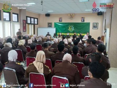 Kepala Kejaksaan Negeri Sleman, Widagdo, S.H. memimpin Rapat Paripurna di Kejaksaan Negeri Sleman yang dikuti oleh seluruh pegawai. Kegiatan ini dibuka dengan Pengarahan dari Kepala Kejaksaan Negeri Sleman kepada seluruh pegawai, dilanjutkan dengan ...
