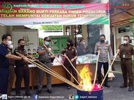 Pada hari Rabu tanggal 5 Oktober 2022 bertempat di halaman belakang Kantor Kejaksaan Negeri Sleman telah dilaksanakan Pemusnahan Barang Bukti dalam perkara Tindak Pidana Umum yang sudah mempunyai kekuatan hukum tetap. Pemusnahan barang ...