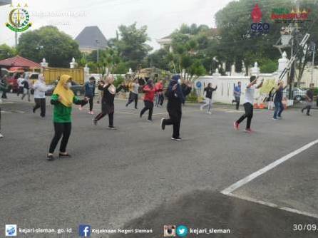 Pegawai Kejaksaan Negeri Sleman mengikuti Senam Bersama bertempat di halaman kantor Kejaksaan Negeri Sleman. Kegiatan senam bersama ini merupakan kegiatan rutin setiap jum'at pagi sebagai upaya untuk menjaga kesehatan dan kebugaran jasmani para ...
