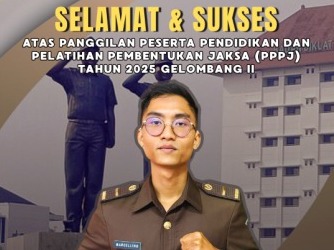 Selamat dan Sukses!Kepada Marcellino Rahadian Prasetyo, S.H. atas pemanggilan sebagai Peserta Pendidikan dan Pelatihan Pembentukan Jaksa (PPPJ) Tahun Anggaran 2025 Gelombang II di Badan Pendidikan dan Pelatihan Kejaksaan Republik Indonesia.Semoga diberikan kelancaran, kesehatan, ...