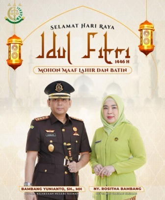Kepala Kejaksaan Negeri Sleman Bambang Yunianto, S.H., M.H., beserta seluruh jajaran mengucapkan Selamat Hari Raya Idul Fitri, Mohon Maaf Lahir dan Batin 1 Syawal 1446 Hijriah/31 Maret 2025#IdulFitri #HariRayaIdulFitri — bersama iaddaerahsleman. ...