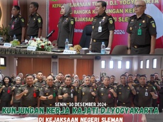 Senin, 30 Desember 2024 Kepala Kejaksaan Negeri Sleman Bambang Yunianto, S.H., M.H., menerima kunjungan kerja Kepala Kejaksaan Tinggi D.I. Yogyakarta Ahelya Abustam, S.H., M.H., yang turut didampingi oleh Asisten Intelijen Agus Rujito, S.H., M.H., ...