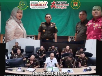 Senin, 23 Desember 2024 Kepala Kejaksaan Negeri Sleman, Bambang Yunianto, S.H., M.H., bersama para Kasi, Kasubag, dan seluruh pegawai Kejaksaan Negeri Sleman, mengikuti kegiatan monitoring dan evaluasi serta pengarahan oleh Jaksa Agung Muda Pengawasan, ...