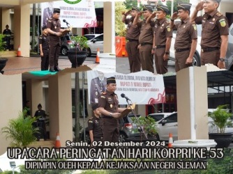 Senin, 2 Desember 2024 Kepala Kejaksaan Negeri Sleman, Bambang Yunianto, S.H., M.H., memimpin Upacara Peringatan Hari Ulang Tahun Korps Pegawai Republik Indonesia (KORPRI) yang ke-53 tahun 2024. Upacara tersebut digelar di halaman kantor Kejaksaan ...
