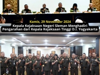 Kamis, 28 November 2024, Kepala Kejaksaan Negeri Sleman, Bambang Yunianto, S.H., M.H., menghadiri pengarahan yang disampaikan oleh Kepala Kejaksaan Tinggi D.I. Yogyakarta, Ibu Ahelya Abustam, S.H., M.H., di aula lantai 1 The Sahid Rich ...