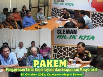 Rabu, 30 Oktober 2024 Kepala Kejaksaan Negeri Sleman Bambang Yunianto, S.H., mengikuti kegiatan rapat bersama Penganut Aliran Kepercayaan Masyarakat (PAKEM) yang diselenggarakan oleh Seksi Intelijen yang bertempat di ruang ekspose lantai II Kejaksaan Negeri ...