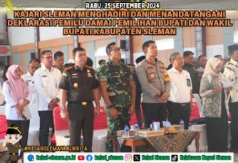 Kamis, 26 September 2024Kepala Kejaksaan Negeri Sleman Bambang Yunianto, S.H., mengikuti acara "Deklarasi Kampanye Damai Pemilihan Bupati dan Wakil Bupati Sleman Tahun 2024" di Graha Sarina Vidi.#pemilu #pilbup #pilkada #sleman — di Kantor Kejaksaan Sleman. ...