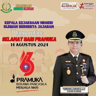 Kepala Kejaksaan Negeri Sleman beserta seluruh Jajaran mengucapkan "Selamat Hari Pramuka Ke-63 Tahun 2024". "Pramuka Berjiwa Pancasila Menjaga NKRI" #kejarislemanmilikkita #kejatijogja #kejaksaanri #haripramuka #pramuka #pramukaindonesia ...