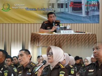 Briefing Kepala Kejaksaan Negeri Sleman Bapak Bambang Yunianto, S.H., kepada seluruh pegawai bertempat di Aula Kantor Kejaksaan Negeri Sleman. Selasa, 2 Juli 2024 ...