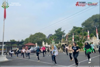 Pegawai Kejaksaan Negeri Sleman mengikuti Senam Rutin Jumat Pagi di halaman kantor Kejaksaan Negeri Sleman. ...