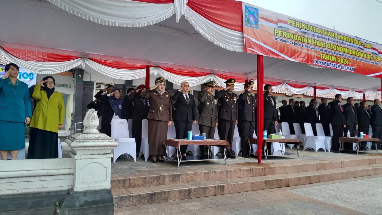 Pelaksanaan Upacara Peringatan HUT Persatuan Jaksa Indonesia ke 73 tahun 2024 dengan tema Persaja Siap Melaksanakan Tranformasi Penegakan Hukum Modern Menuju Indonesia Emas 2045 di halaman kantor Kejaksaan Negeri Sleman pada hari Senin tanggal ...