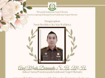 Keluarga Besar Kejaksaan Negeri Sleman mengucapkan turut berduka cita atas berpulangnya ke Rahmatullah, Bapak Arief Muda Darmanta, S.H., M.H. (Jaksa Utama Pratama pada Kejaksaan Tinggi D.I. Yogyakarta)Semoga amal ibadah Almarhum diterima disisi Allah ...