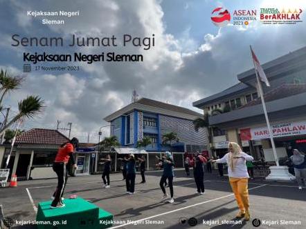 Jumat, 17 November 2023 Kejaksaan Negeri Sleman melaksanakan kegiatan senam bersama. Senam ini dilaksanakan Pukul 07.30 Wib dan diikuti oleh Kepala Kejaksaan Negeri Sleman, para Kasi, Kasubagbin, dan Pegawai di lingkungan Kejaksaan Negeri ...