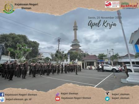 Apel Kerja di Lingkungan Kejaksaan Negeri Sleman dipimpin oleh Kepala Seksi Tindak Pidana Khusus pada Kejaksaan Negeri Sleman, Ko Triskie Narendra, S.H.,M.H. diikuti oleh seluruh pegawai. Senin, 20 November 2023 #kejarisleman #kejatijogja ...