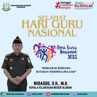 Kepala Kejaksaan Negeri Sleman Widagdo, S.H., M.H., beserta Jajaran mengucapkan Selamat Memperingati Hari Guru Nasional.“Bergerak Bersama Rayakan Merdeka Belajar” @kejaksaan.ri #kejaksaanhebat #kejaksaanRI #penguatanB #kejaksaanRB #kejatijogja #Berintegritas #KerjaCerdas#MelayaniDenganlkhlas #Yogyakartalstimewa #harigurunasional2023 ...