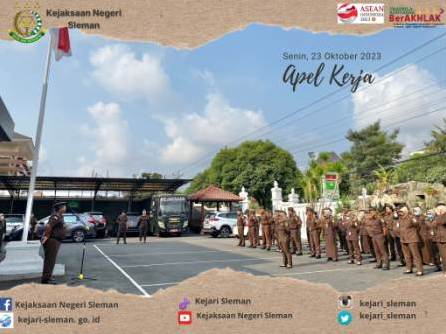 Apel Kerja di Lingkungan Kejaksaan Negeri Sleman dipimpin oleh Kepala Sub Bagian Pembinaan, Suryanto, S.H. diikuti oleh seluruh pegawai. Senin, 23 Oktober 2023 ...