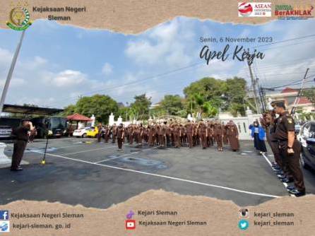 Apel Kerja di Lingkungan Kejaksaan Negeri Sleman dipimpin oleh Kepala Kejaksaan Negeri Sleman, Widagdo, S.H.,M.H. diikuti oleh seluruh pegawai. Senin, 6 November 2023 ...