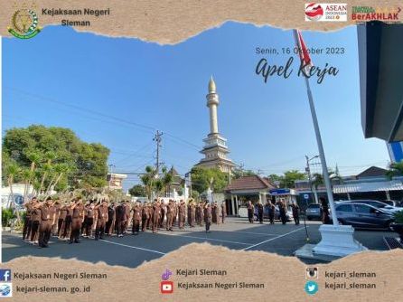 Apel Kerja di Lingkungan Kejaksaan Negeri Sleman dipimpin oleh Kepala Seksi Barang Bukti dan Barang Rampasan, Noviana Permanasari, S.H.,M.H. diikuti oleh seluruh pegawai. Senin, 16 Oktober 2023 ...