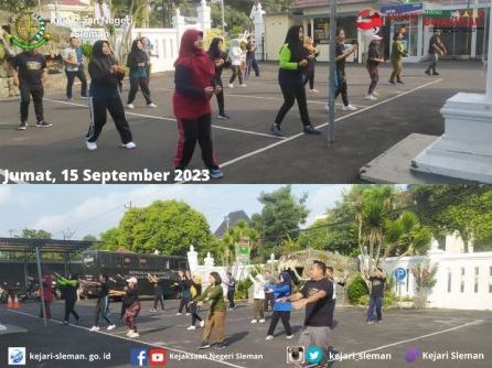 Sleman - Pegawai Kejaksaan Negeri Sleman mengikuti Senam Bersama bertempat di halaman kantor Kejaksaan Negeri Sleman. Kegiatan senam bersama ini merupakan kegiatan rutin setiap Jum'at pagi sebagai upaya untuk menjaga kesehatan dan kebugaran ...