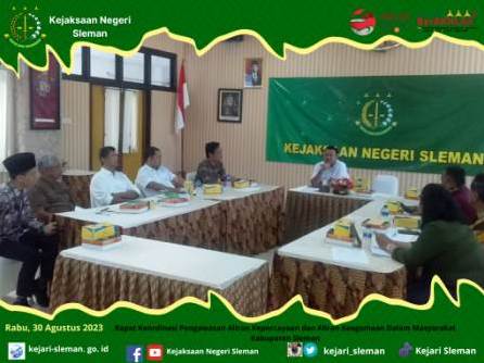 Sleman - Rapat Koordinasi Pengawasan Aliran Kepercayaan dan Aliran Keagamaan Dalam Masyarakat Kabupaten Sleman yang diselenggarakan oleh Kejaksaan Negeri Sleman, sebagai Penanggung Jawab Kepala Kejaksaan Negeri Sleman Bapak Widagdo, S.H.,M.H bertempat di Aula ...