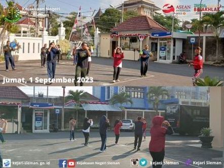 Sleman - Pegawai Kejaksaan Negeri Sleman mengikuti Senam Bersama bertempat di halaman kantor Kejaksaan Negeri Sleman. Kegiatan senam bersama ini merupakan kegiatan rutin setiap Jum'at pagi sebagai upaya untuk menjaga kesehatan dan kebugaran ...